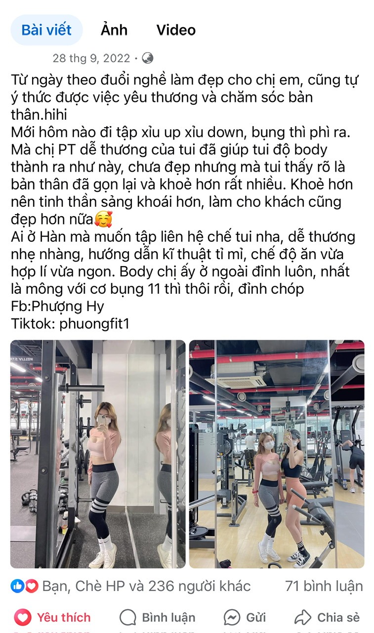Khách hàng chia sẻ kinh nghiệm và cảm nhận về dịch vụ của PhuongFit
